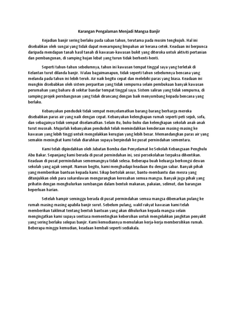 Karangan Pengalaman Menjadi Mangsa Banjir Pdf